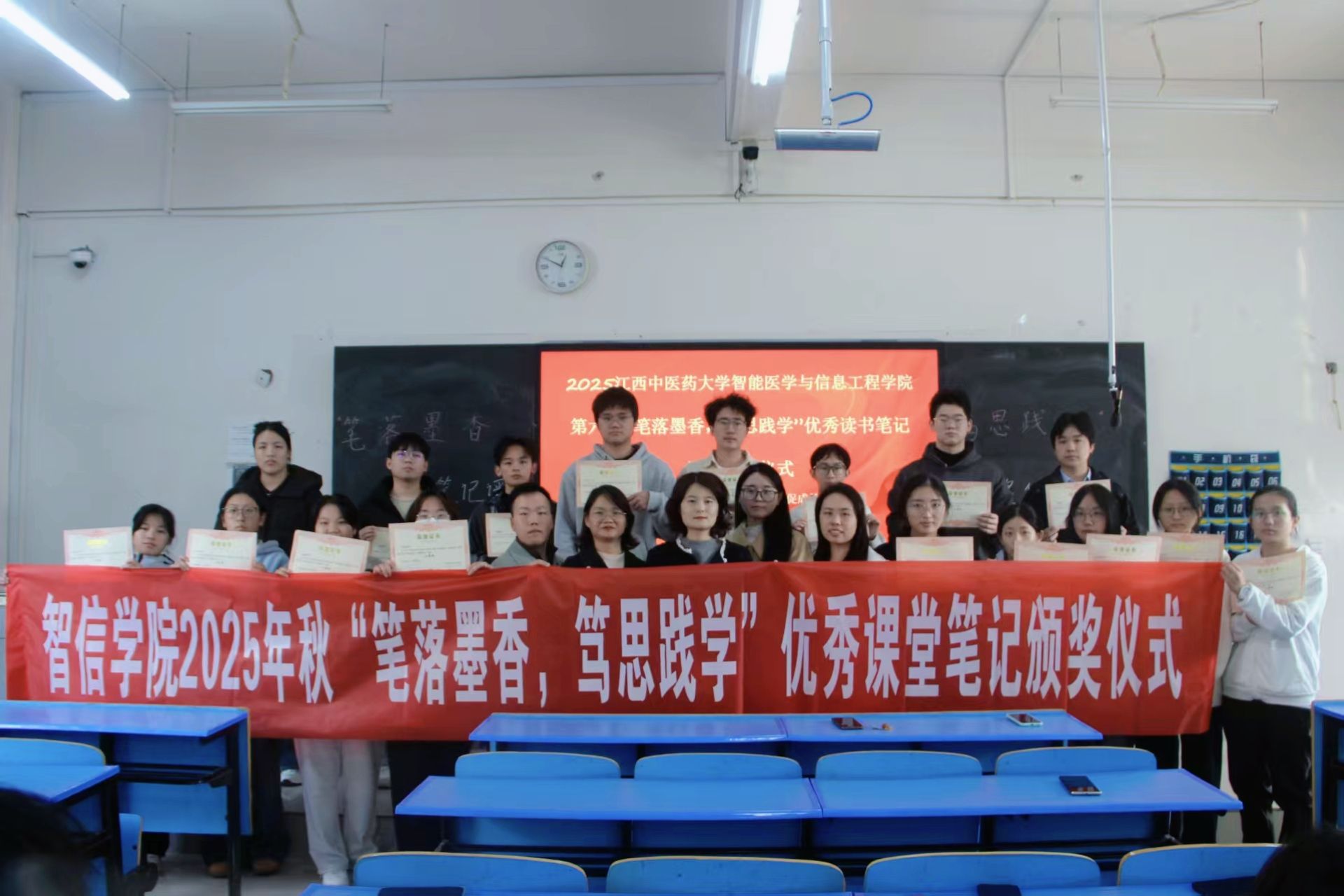 江中新闻网讯(通讯员 严霞 邓蕾)为引导学生夯实课堂学习、提升思维品质,营造“勤学善思、笔墨留香”的育人氛围,江西中医药大学智能医学与信息工程学院于2025年11月7日举办第六届“笔落墨香,笃思践学”优秀课堂笔记评选活动。活动自启动以来,得到全院学生的积极响应,共收到各类课堂笔记百余份,参与覆盖面广,体现出同学们高涨的学习热情与扎实的学风面貌。